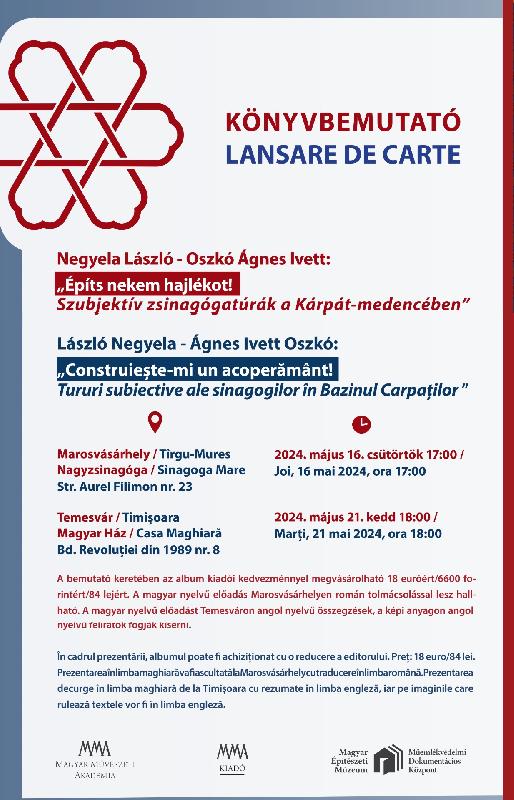 On May 16th of this year, a team from the Museum of Architecture in Budapest requested permission to present an album titled "Raise Me a Roof," featuring synagogues from the Carpathian arc, which included the synagogue from Târgu Mureș, with text in Hungarian and English.The co-author, details...