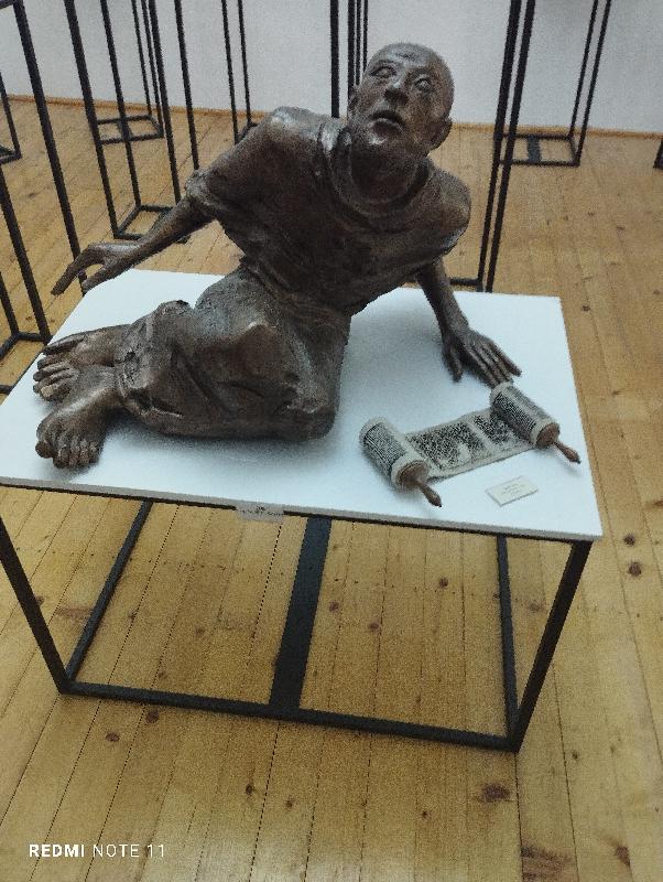 The "Kaddish Andreas Pollak" collection brought from Germany consists of 40 small bronze sculptures, graphic works, and textile pieces, created by: Vandanyan Armen, Marek Josef, Gyarmathy János, Rétfalvi Sándor, Denzen Barsboldt, Salman Mark, Solti Gizella, Széchenyi details...