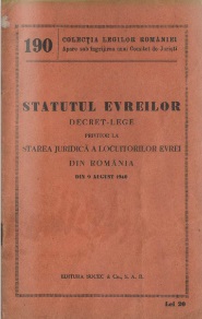 A zsidók státusza - a romániai zsidó lakosok jogállására vonatkozó törvény határozat augusztus 9, 1940 tovább